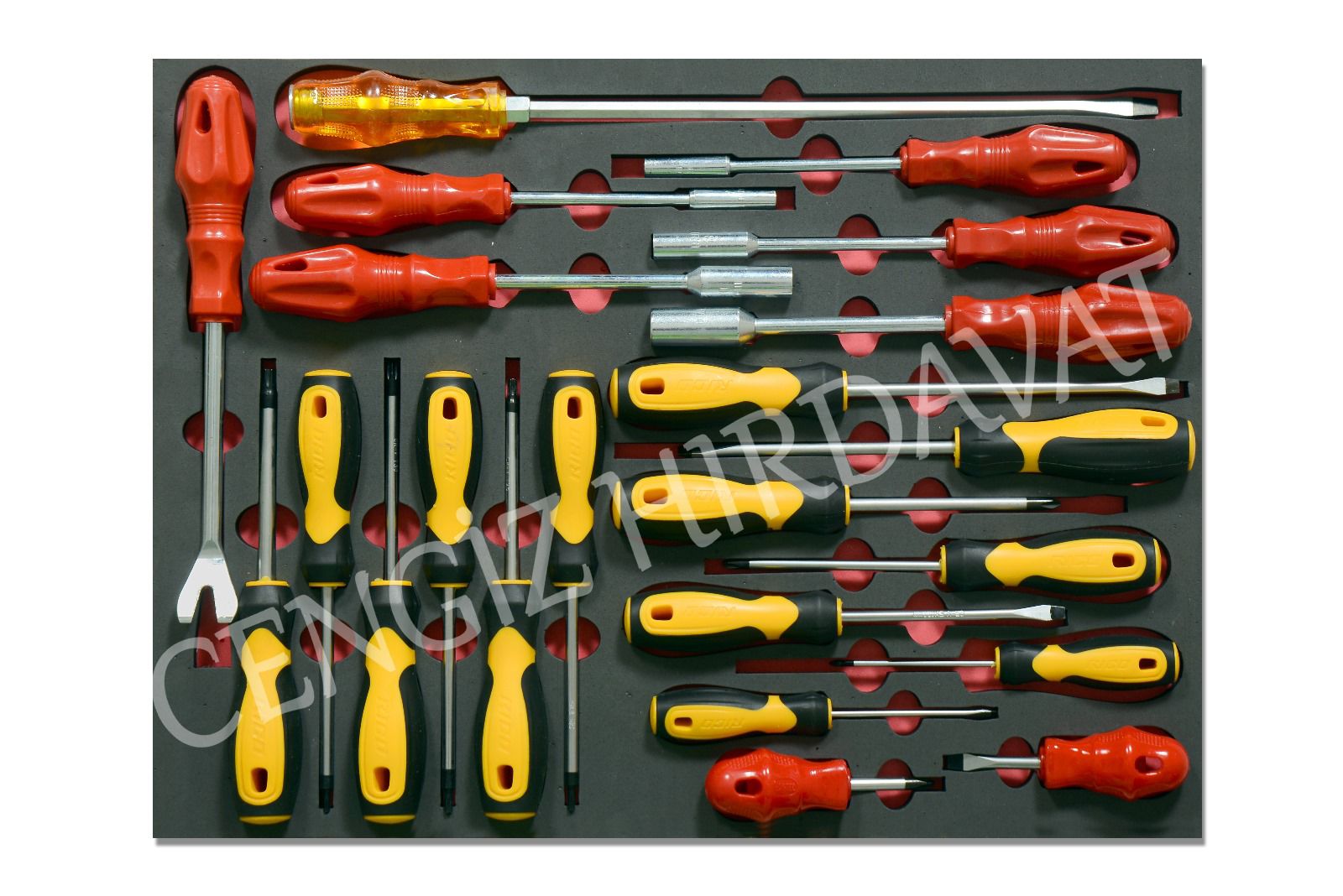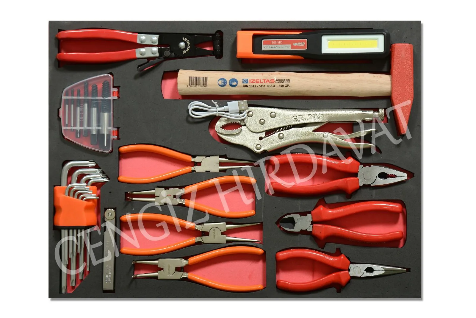 Firmamızda 285 parça dolu takım arabası, 217 parça dolu takım arabası gibi kapsamlı ürün gruplarının yanı sıra çok çeşitli el aletleri de bulunmaktadır. Her ürünümüz, yoğun çalışma koşullarına dayanıklı ve uzun ömürlü malzemelerden üretilmiştir. Atölyelerde, fabrikalarda veya kişisel garajlarda fark etmeksizin, tüm kullanıcıların beklentilerini karşılayacak profesyonel kalitede çözümler sunuyoruz. Müşterilerimiz ihtiyaç duydukları her ürünü tek bir noktadan temin edebilmenin kolaylığını yaşıyor.